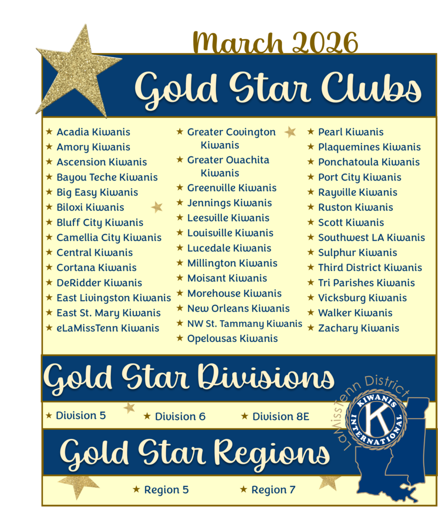 Congratulations to this month’s Gold Star Clubs, Divisions and Regions!